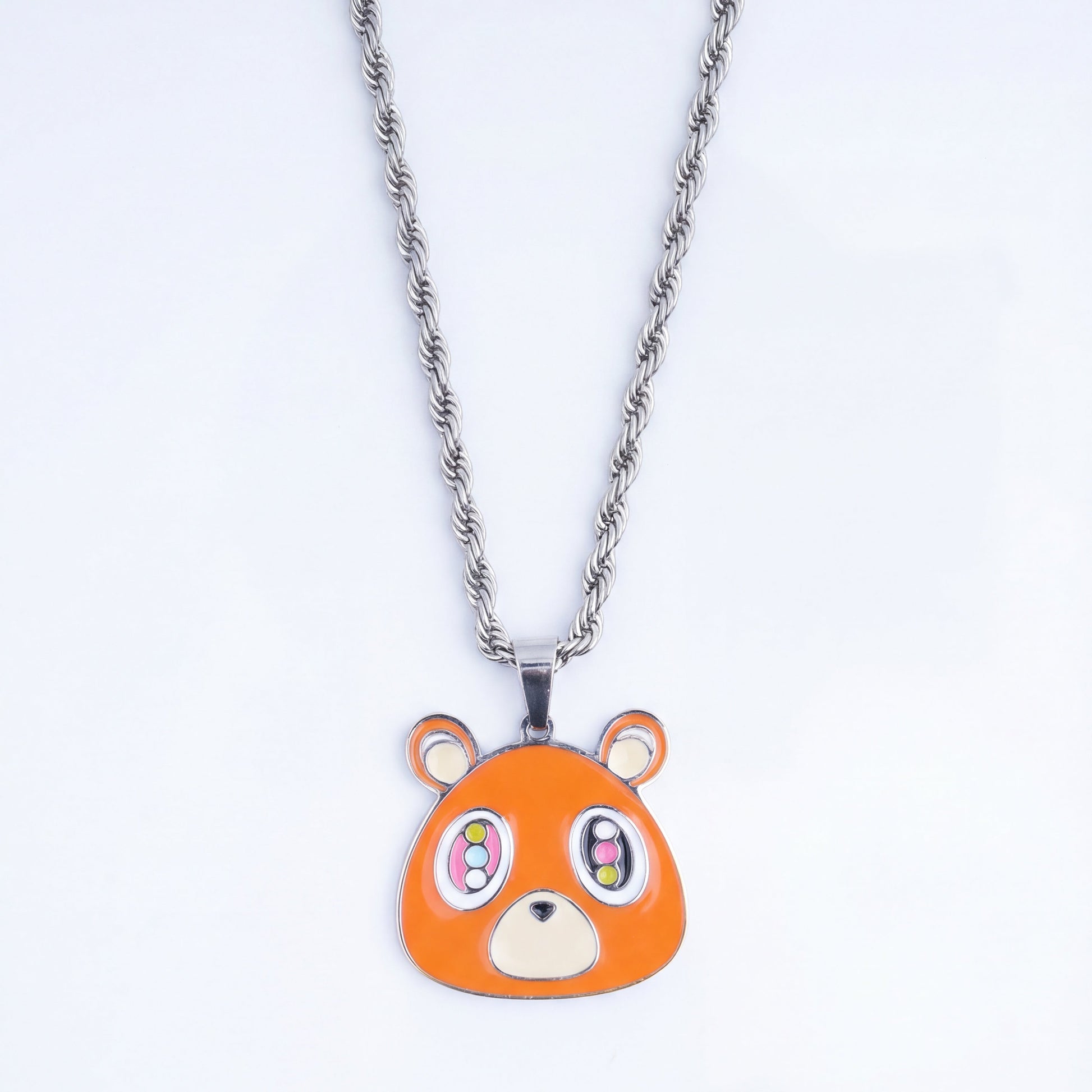 Crafted from high-quality enamel metal, this necklace features Kanye West's iconic "Dropout Bear" from the graduation Era.
